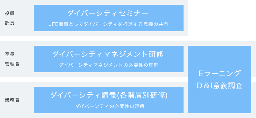 JFE商事ではダイバーシティの推進には各階層での理解が不可欠であると考えます。
